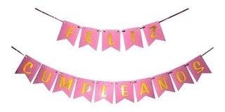 BANDERIA IMPOTADO FELIZ CUMPLEAÑOS ROSA Y ORO