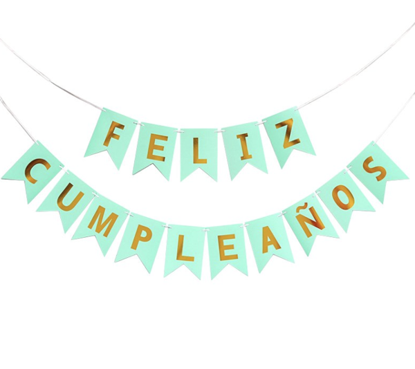BANDERIN IMPORTADO FELIZ CUMPLEAÑOS VERDE Y ORO
