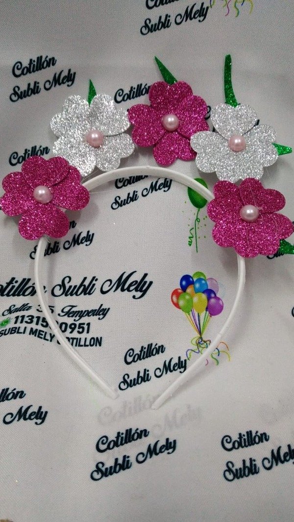 VINCHA CON FLORES RSAO Y BLANCAS CON BRILLANTINA