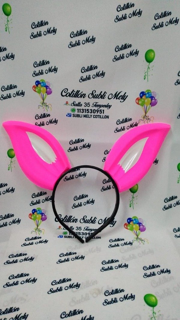 VINCHA DE CONEJO DE PLASTICO COLOR ROSA Y BLANCO