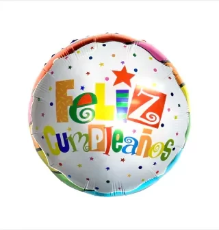 GLOBO FELIZ CUMPLEAÑOS 45CM FONDO BLANCO A LUNARES