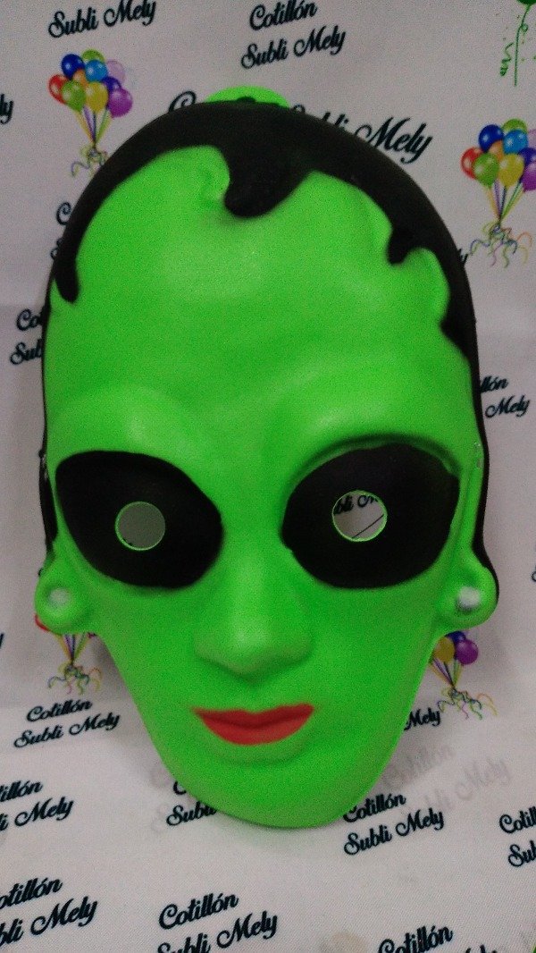 Pechera (36cm x 38cm) y careta (18cm) de cartón, impresas de un solo lado. Con hilo para armar.