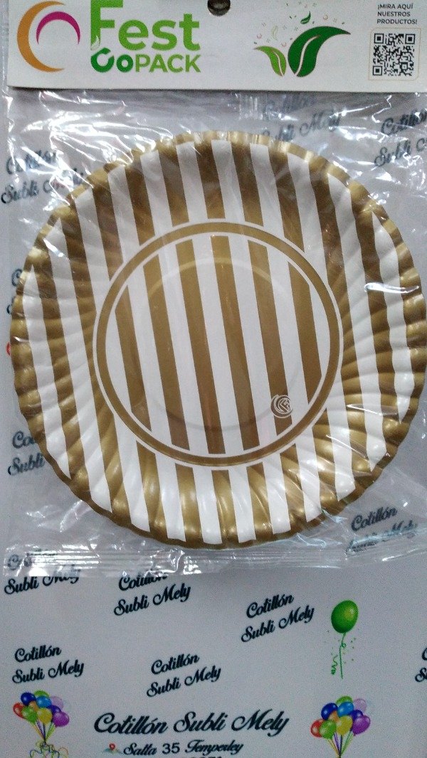 PLATOS RAYADO DORADO X 8