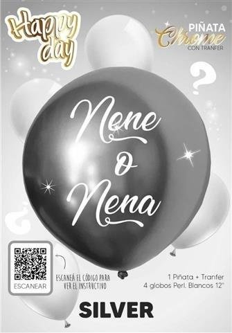 PIÑATA CHROME TRANSFER 24" GLOBOS SILVER NENA-NENE