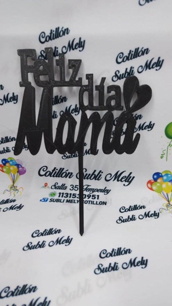 TOPPER DE PLASTICO FELIZ DIA MAMÁ NEGRO