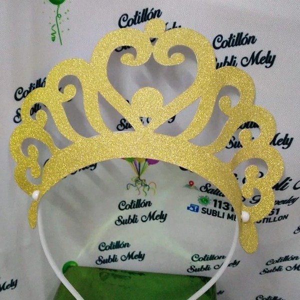 VINCHA DE PAPEL CON CORAZON DORADO GLITTER