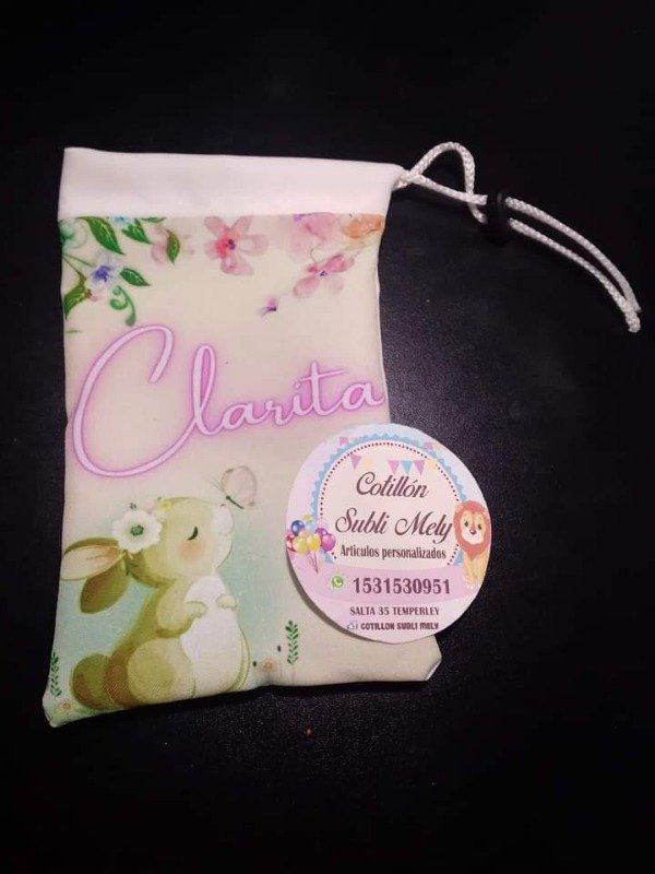 SON BOLSITAS DE TELA CON UNA CARA PERSONALIZADA Y SE CIERRA CON CINTA, TENES VARIAS MEDIDAS