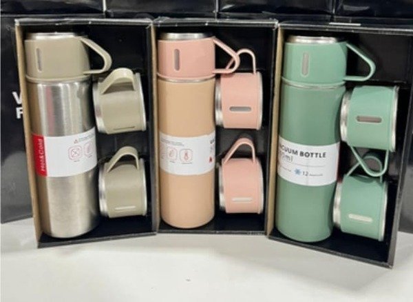 TERMO DE 500 CC FRIO CALOR CON 3 TAZAS DE ACERO