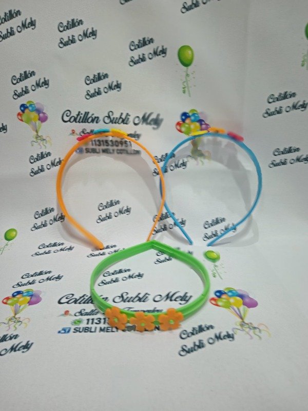 VINCHA DE PLASTICO CON FLORES (VARIEDAD DE COLORES)