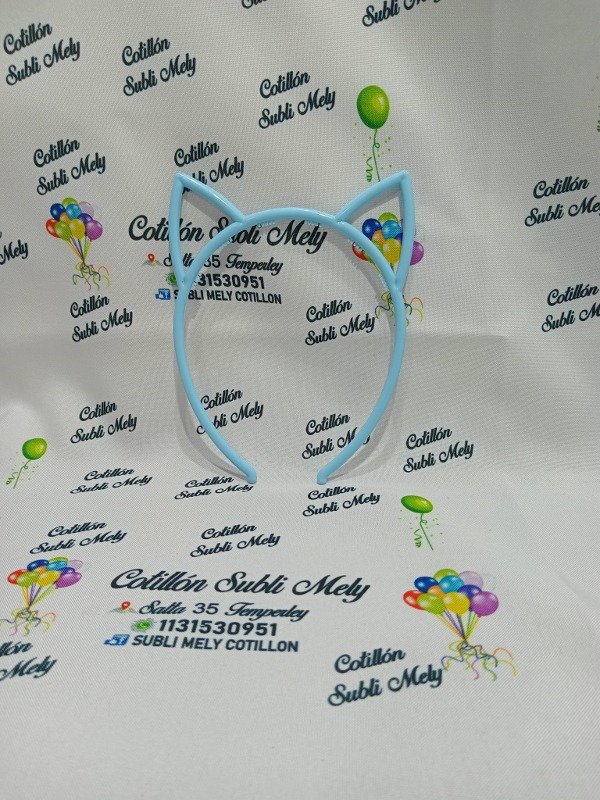 VINCHA PLASTICA DE OREJA DE GATO CELESTE (VARIEDAD DE COLORES)