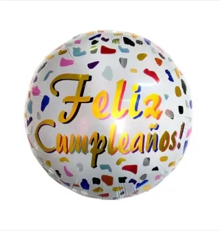 GLOBO FELIZ CUMPLE 45CM REDONDO LETRAS DORADAS