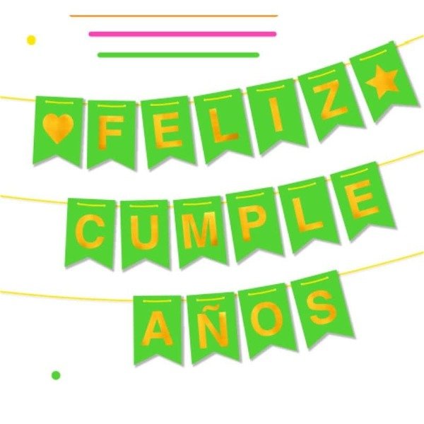 BANDERINES FELIZ CUMPLE DE COLOR VERDE Y AMARILLO