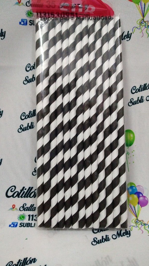 SORBETE DE POLIPAPEL X 10 NEGRO CON RAYAS BLANCAS SORBETE