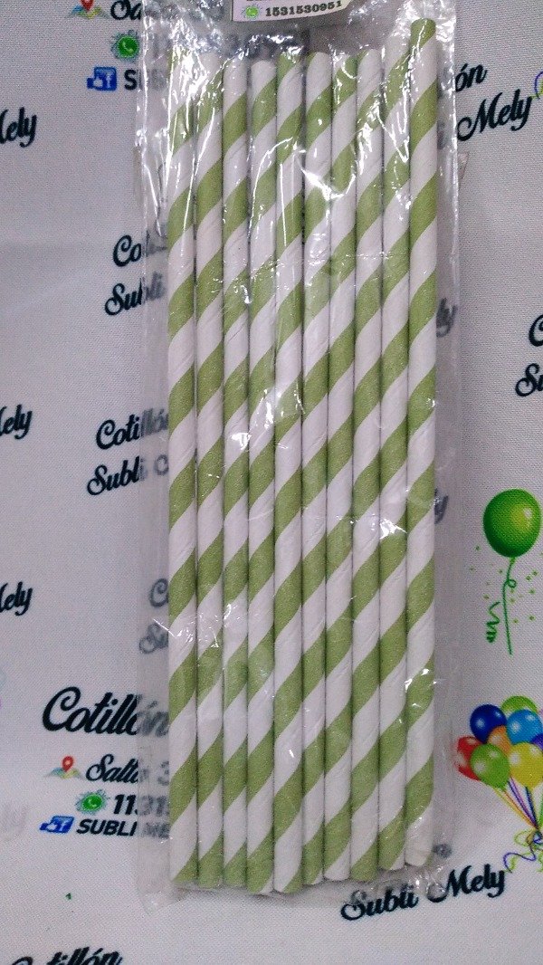 SORBETES POLIPAPEL X 10 VERDE CON RAYAS BLANCAS SORBETES