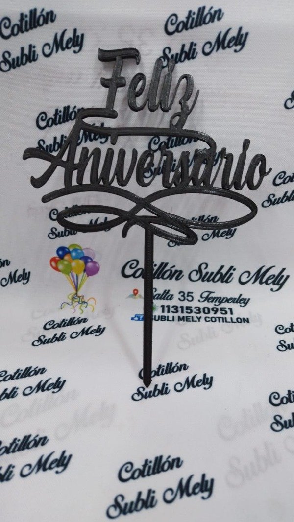 TOPPER PLASTICO FELIZ ANIVERSARIO NEGRO