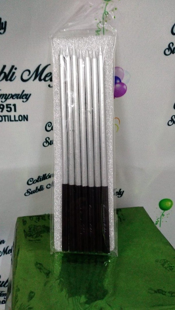 VELA METALIZADA DE COLOR PLATA Y NEGRO c/u